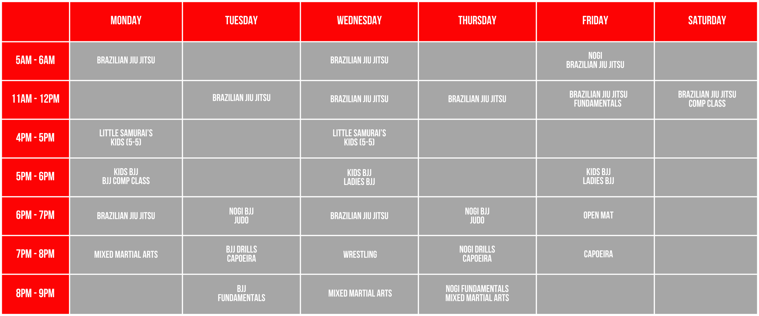 Please click the learn more button too view our availability for all things Brazilian Jiu-Jitsu.