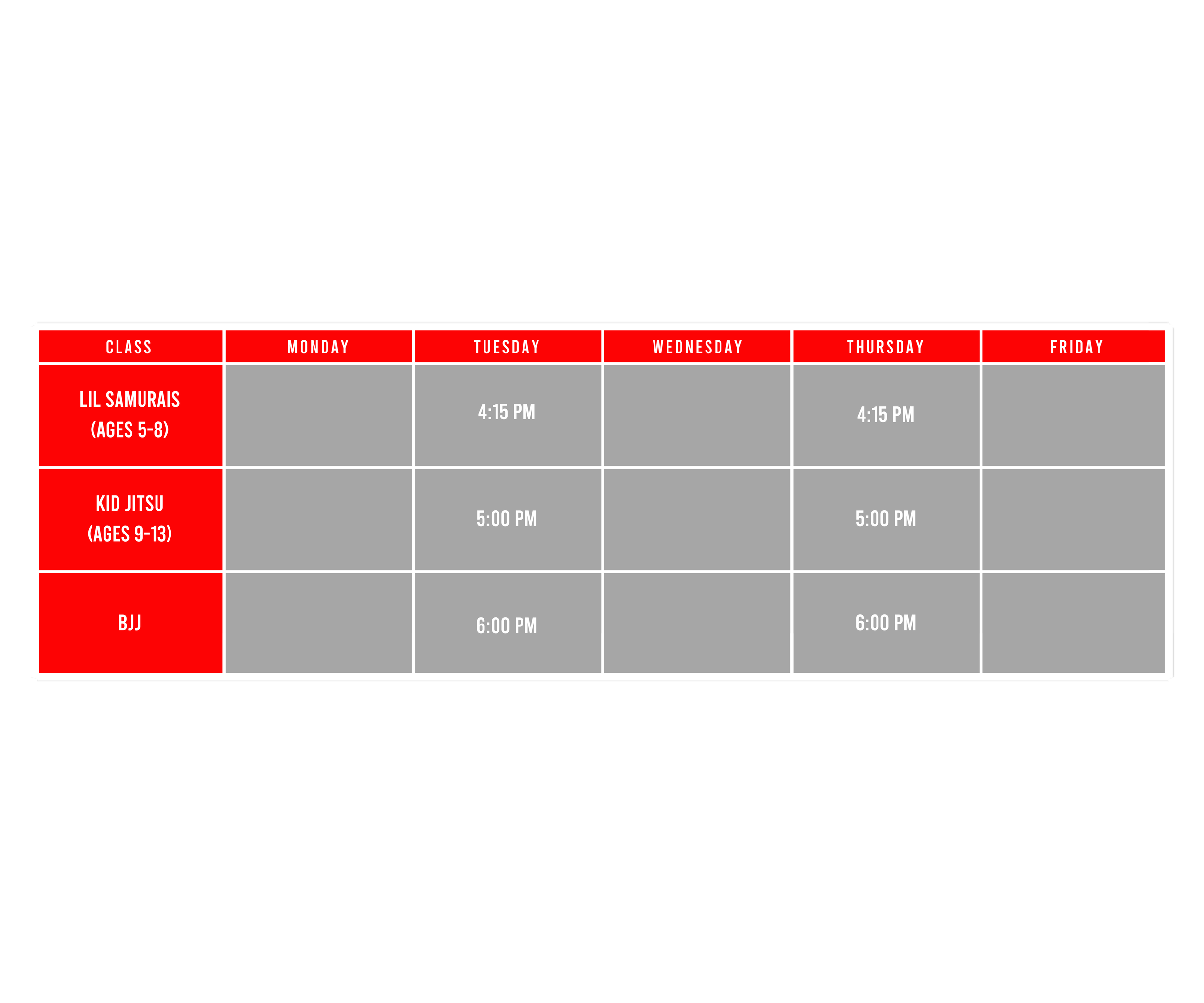 • Please click the learn more button too view our availability for all things Kids Jitsu